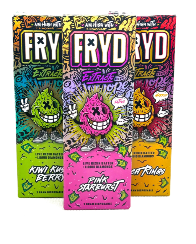 Los Fryd Extracts desechables de 2 gramos son una lĂnea de vaporizadores precargados con diamantes lĂquidos + resina viva, diseĂąados para ofrecer una experiencia de vapeo intensa, sabrosa y sin complicaciones. Cada unidad contiene THCA, Delta 9, y otros cannabinoides activos, con perfiles de sabor que van desde lo afrutado hasta lo postre gourmet