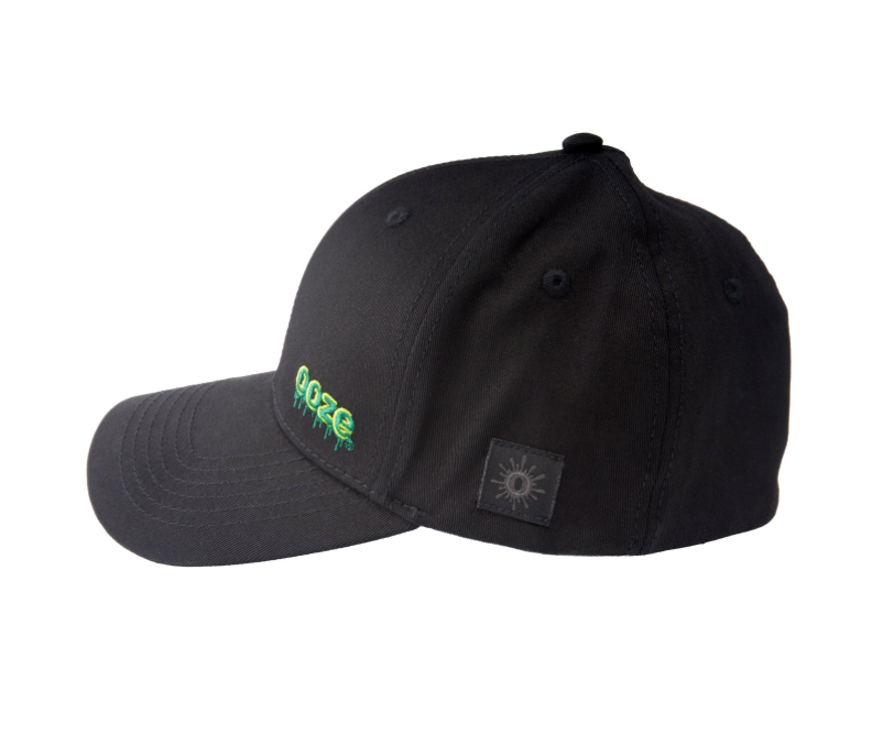 Gorra ajustada en color negro, con visera curva y el logo Ooze en gris al frente. El detalle distintivo está bajo la visera: el diseño colorido Hype Engine, que aporta estilo único. Disponible en talla grande.