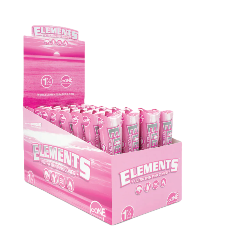 Disfruta tus sesiones con estilo gracias a los Pink Cones de Elements. Pre-rolados para mayor comodidad, ultradelgados y con goma vegana, ofrecen una combustión limpia y uniforme en un elegante tono rosa.