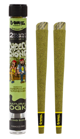 Conos herbales exclusivos y libres de tabaco, elaborados con una mezcla de manzanilla, yerba mate y cacao, infusionados con terpenos naturales. Además, la colección incluye una colaboración especial con los icónicos Cheech & Chong, ofreciendo sabores únicos y auténticos.