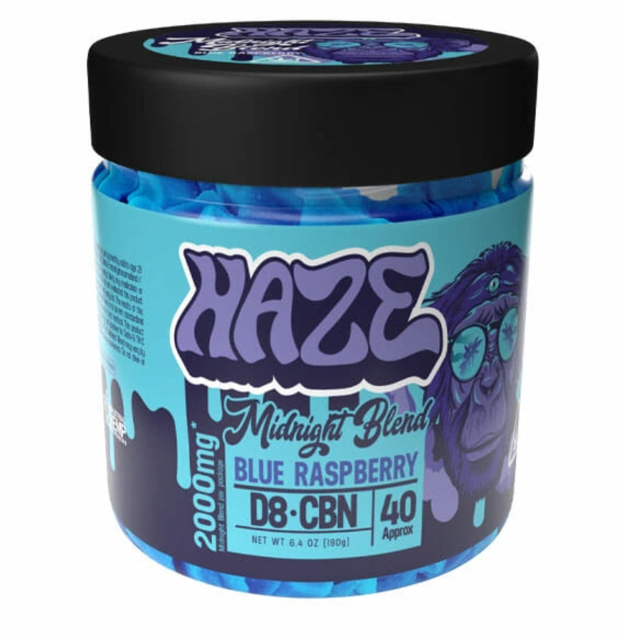 Las Midnight Blend Gummies de HAZE están formuladas para ayudarte a desconectar después de un día agitado. Cada gomita contiene una mezcla potente de Delta-8 THC y CBN, dos cannabinoides conocidos por sus efectos calmantes y sedantes, ideales para promover un sueño reparador y aliviar el estrés. Disponibles en sabores frambuesa azul, naranja y fresa, estas gomitas índica ofrecen una experiencia deliciosa y funcional