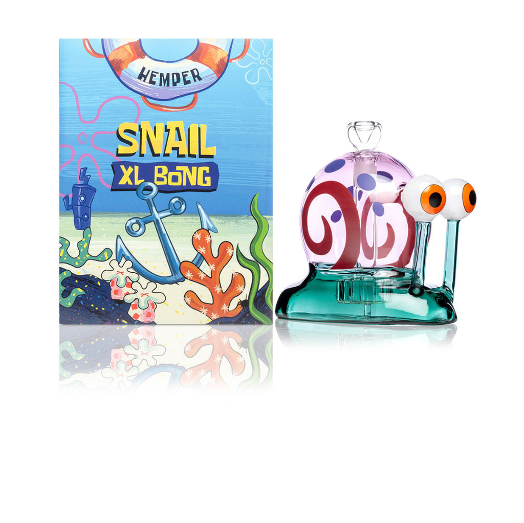 ¡Ahora presentamos con orgullo nuestro próximo bong con temática de agua a nuestra tienda! El bong Snail XL se inspiró en nuestro amor por los caracoles que viven bajo el mar. Cuidadosamente hecho a mano para crear un hermoso bong de vidrio de trabajo. Este lindo caracol presenta 2 globos oculares grandes con calcomanías de ojos naranjas y tiene una calcomanía de patrón de concha grande.