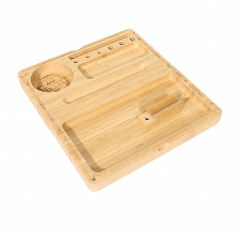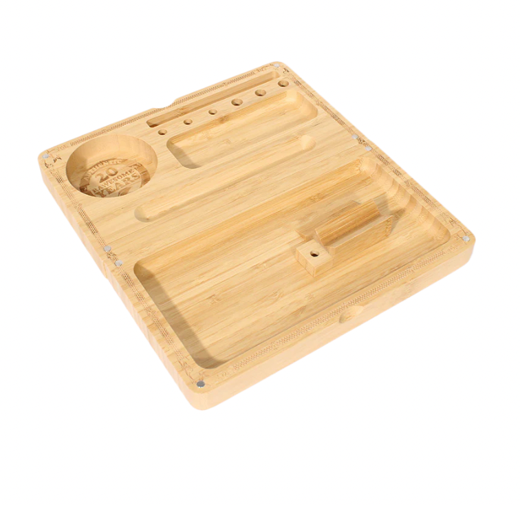 šCharola de madera con diseƱo Backflip, creada para ser fĆ”cilmente guardada despuĆ©s de la sesión. Una innovación RAW que celebra 20 aƱos de estilo y funcionalidad, llevando la clĆ”sica rolling tray a otro nivel.