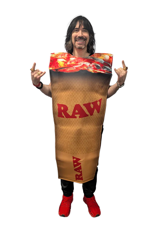🥸 Disfraz de espuma ligero y cómodo que recrea el icónico RAW Cone en tamaño gigante. Con su punta “recién encendida” y el logo RAW, es el accesorio perfecto para destacar en cualquier fiesta o festival.