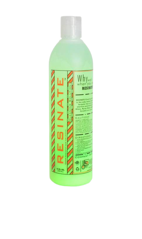 La Resinate® Cleaning Solution es una fórmula abrasiva biodegradable, sin alcohol ni COV, diseñada para limpiar, esterilizar y desinfectar al contacto superficies como vidrio, Pyrex, metal y cerámica Su tecnología AbrasivAction™ utiliza gránulos de alta calidad que eliminan la resina de forma rápida y eficaz, incluso en acumulaciones pesadas de aceites, dabs y ceras