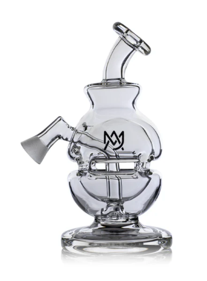 El Royale Mini Dab Rig de MJ Arsenal es una pieza de vidrio artesanal inspirada en el icónico diseño “fab-egg”, que combina filtración primaria y secundaria en un formato ultracompacto de 5 pulgadas. Su base de 2.4 pulgadas ofrece estabilidad superior, mientras que su sistema de cámaras internas y percolador conectado a la base garantiza caladas suaves, frescas y llenas de terpenos