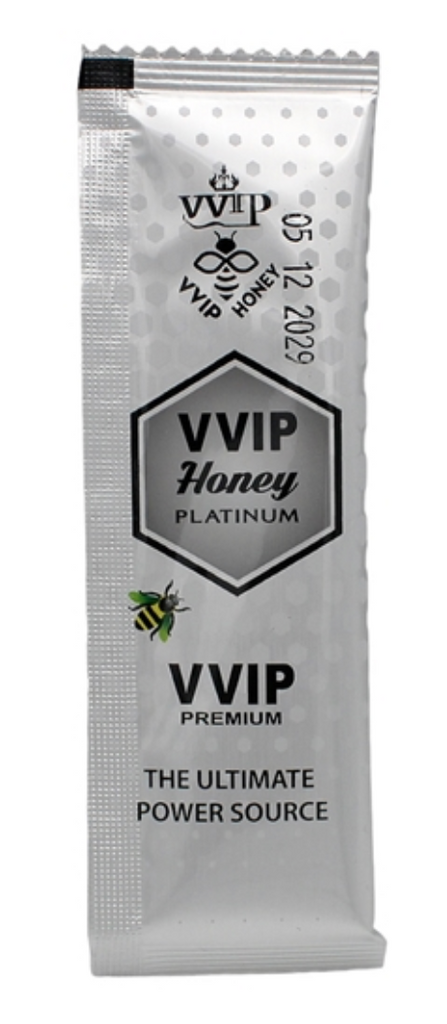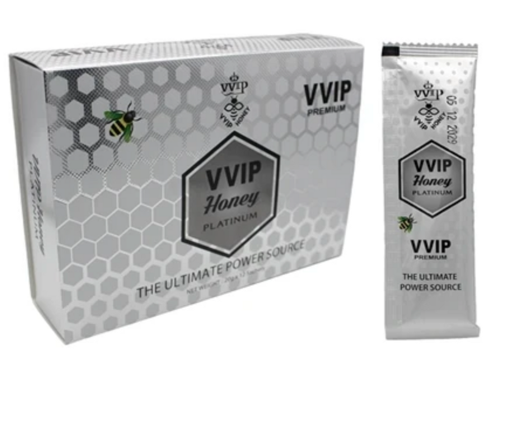 VVIP Honey Platinum es un complemento de mejora sexual presentado en prácticos sobres de 20 g, con 12 unidades por caja. Su fórmula exclusiva está diseñada para potenciar la vitalidad y el bienestar íntimo, ofreciendo una experiencia refinada y efectiva. Ideal para quienes buscan un impulso natural con elegancia y discreción.